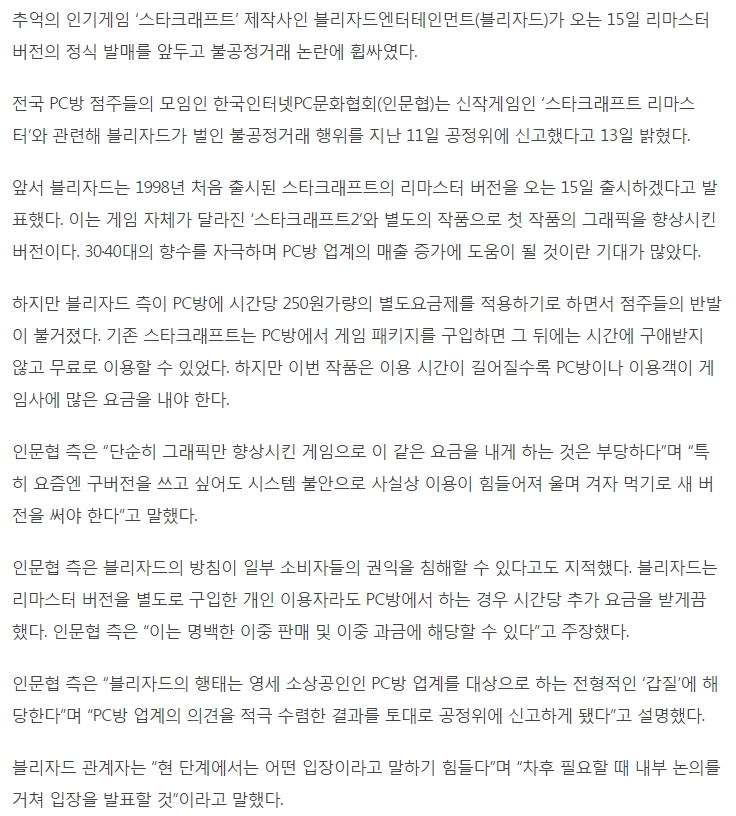 하다 하다 블리자드가 갑질한다고 공정위를 외치고 계신다 ㅋㅋㅋㅋㅋ
