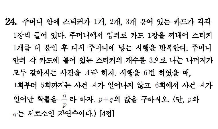 2011년도 9월 평가원 가,나형 공통으로 24번으로 출제됬다