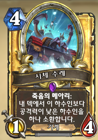 4코 1/4 기계, 죽음의 메아리: 내 덱에서 이 하수인보다 공격력이 낮은 하수인을 하나 소환합니다.