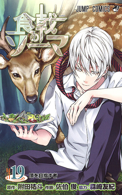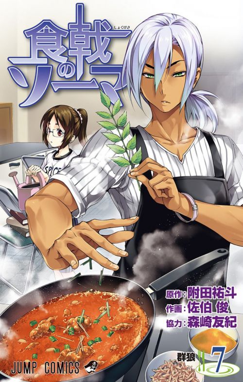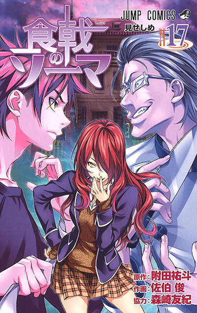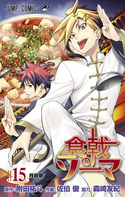 식극의 소마 단행본 커버 모음이다. 등장인물은 왼쪽부터 순서대로 서술.