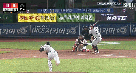 하지만 기대하지 않던 조툰이 출루하자 신본기가 2루타를 까서 추격의 발판을 마련했다. 참 짜증나는 게 평소에는 못치는데 꼭 쳐줘야 할땐 밥값을 해서 까기도 그렇다.