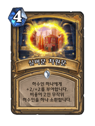카라잔 차원문들 중에 역대 최악의 가성비를 자랑한다. 씹랄이 2코로 1코 소환하고 노루가 6코로 6코 소환하며 전사가 5코로 4코 소환할때 얘는 지 혼자서 주문 코스트 -2의 비용을 가진 하수인을 소환한다.
