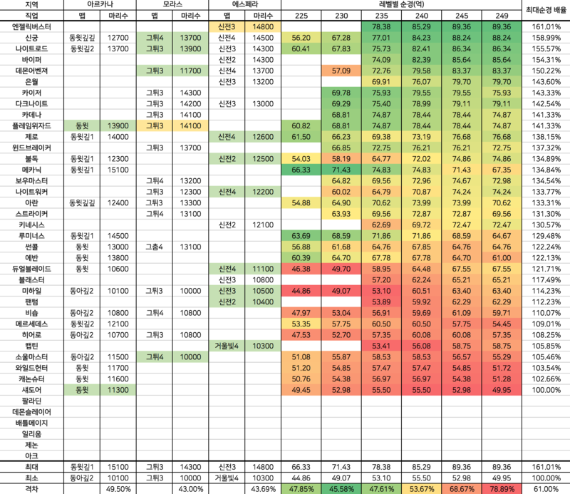 | 마법사계열 | 아크메이지(불,독) 아크메이지(썬,콜) 비숍 |
