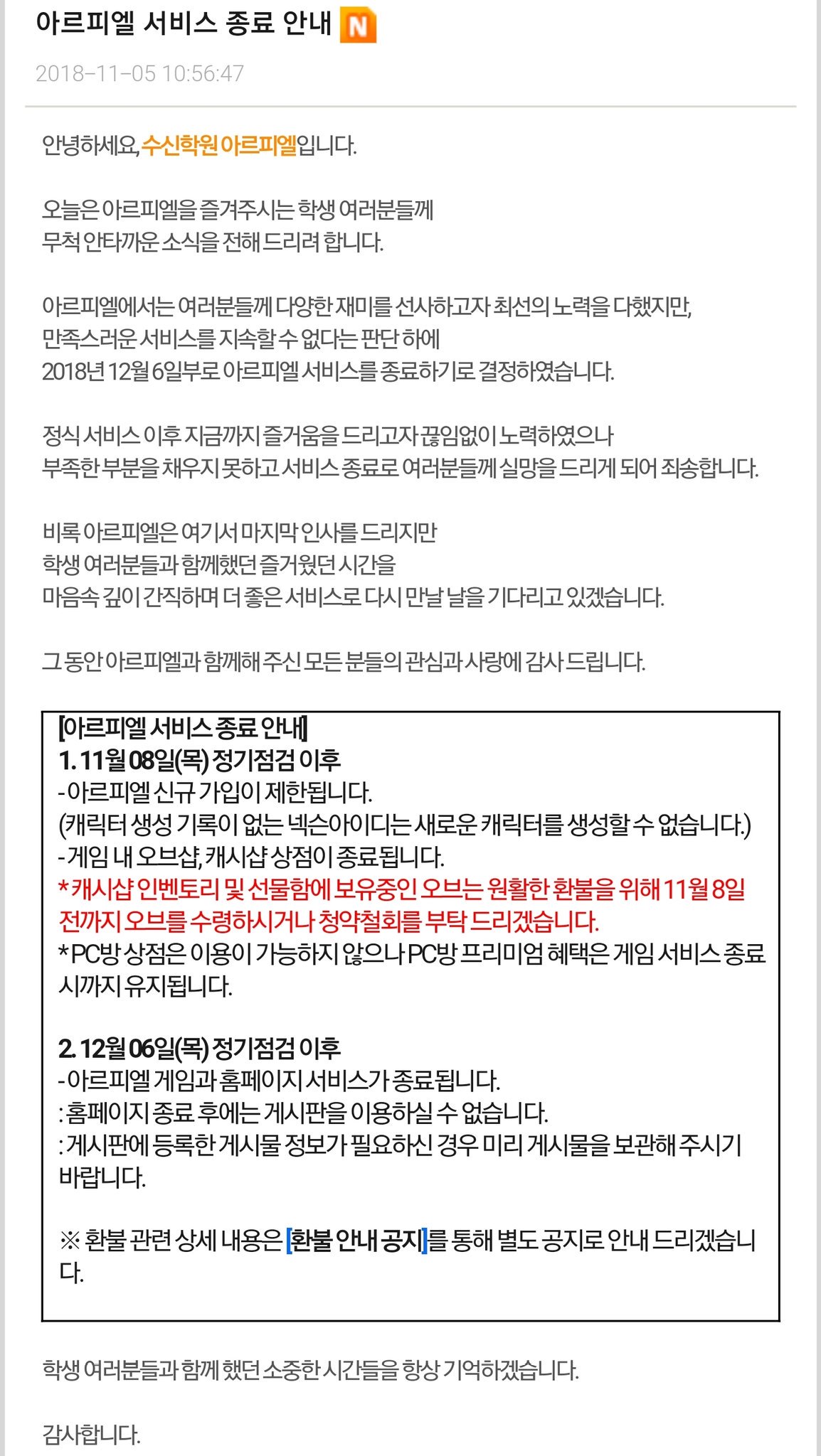 서비스 종료