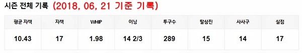 6월14일 칰상대로 잘막나 싶더니 '외국인 학생주임' 제라드 호잉에게 쓰라린 맛을 봤다. 일단 선발이든 롱맨이든 2군에서 내려서 진지하게 연습하고 오는게 나아보인다.