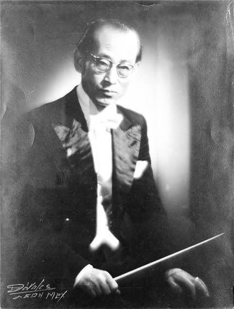 1941년 명치절(일본의 명절)에 기미가요 연주를 지휘했다는 사실도 알려졌다.