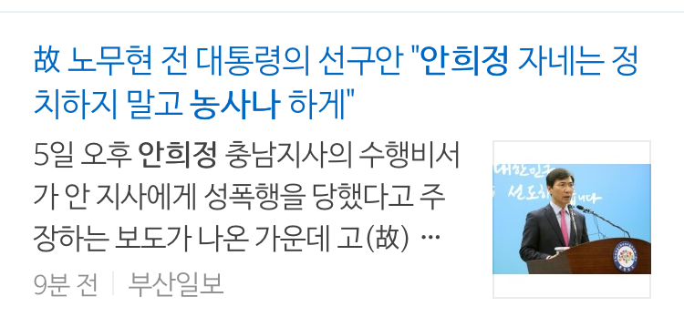 이거진짜 대단한게 뭐냐면 파워쎆스 뉴스에 일정 나오던때 낮에는 안희정은 멀쩡하게 충청도를 싸돌아다니며 도지사 활동을 일반인이라면 좆빠지게 했다는 것이다.