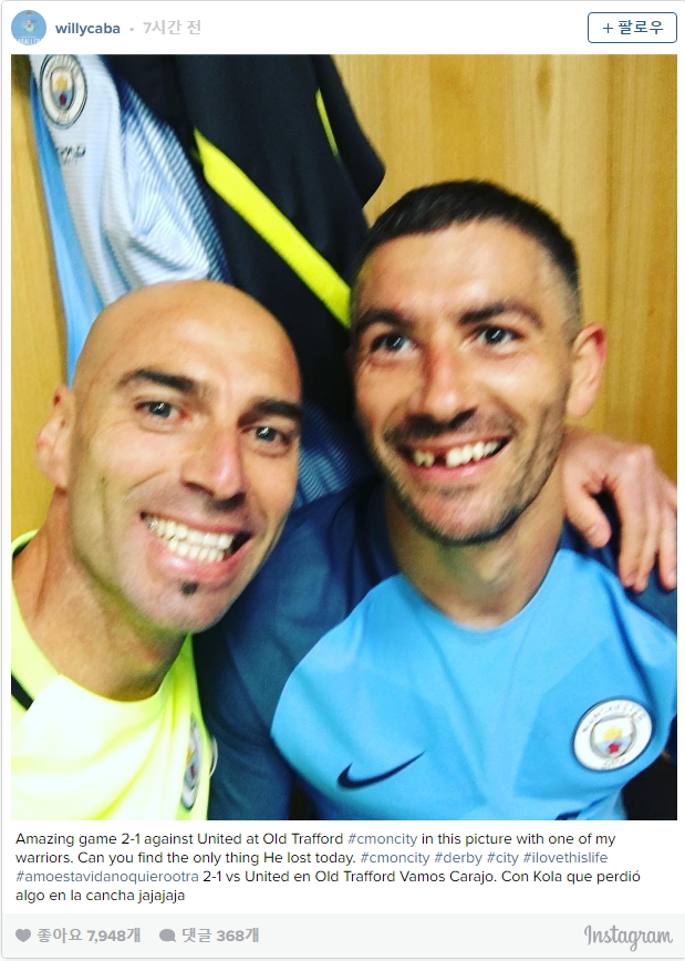 펠라이니의 비기 펠꿈치에 당해서 이빨 날라간 불쌍한 맨시티 선수