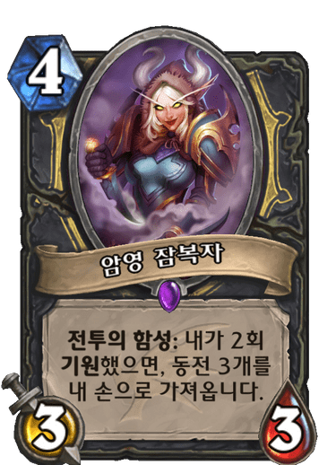 그러다 확팩 출시 2주차에 졸개도적보단 하이랜더도적이 떴는데 짬통덱 특성상 기원카드가 적어서 동전각을 보기 어렵자 빠졌다.