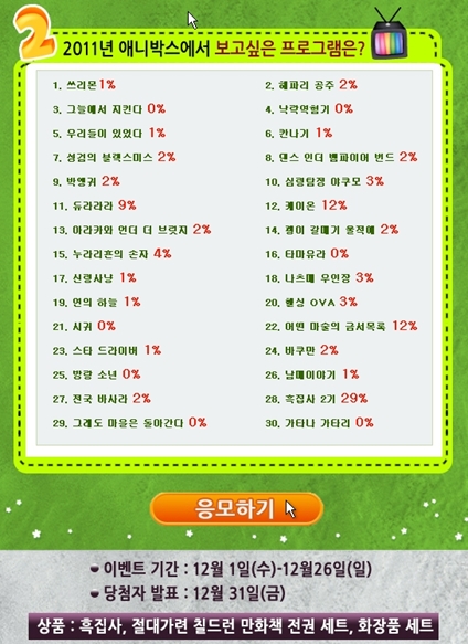 애초에 흑집사 2기를 방영할 목적으로 짜고 친 고스톱으로 투표를 기획했던 애니박스는 당황하여 황급히 해당 항목을 삭제했다.