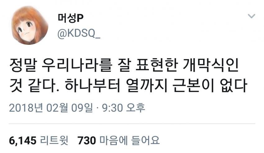 2018 평창 동계올림픽 개막식을 두고 갑자기 갓니킹사가 되었다.