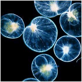 몸은 공 모양으로 지름이 약 2mm이다. 껍데기가 없다. 편모공(鞭毛孔)은 거대하고 입처럼 깊이 패여 있으며 1개의 굵은 촉수가 몸 밖으로 나와 원생동물이나 갑각류의 유생을 잡는 것이 특징이다. 밤되면 빛이 난다하더라.
