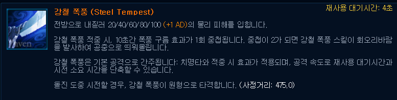 그외에 야스오에겐 원거리 기술이라면 애쉬의 수정화살(R) 같은것도 막아주는 바람 장막(W) 라는 기술도 있는데