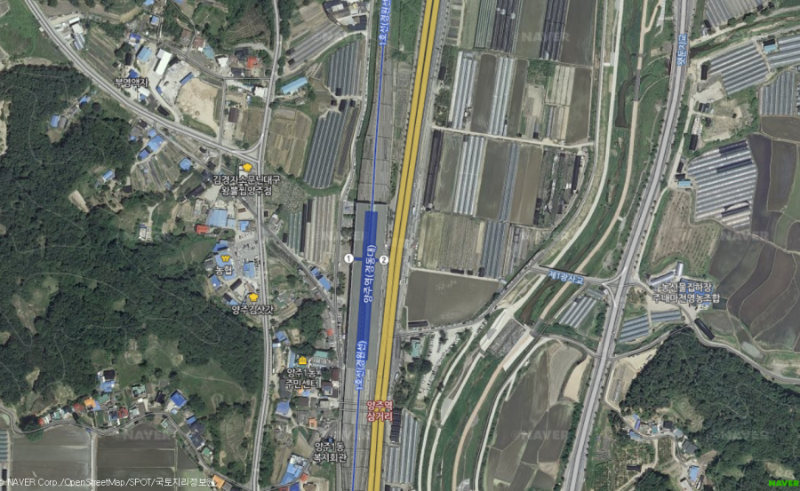 역 이름은 양주역인데 양주시의 중심지역이 아닌 사람이 많이 살지 않는 곳에 위치하고 있다. 이건 이천역도 비슷하다.