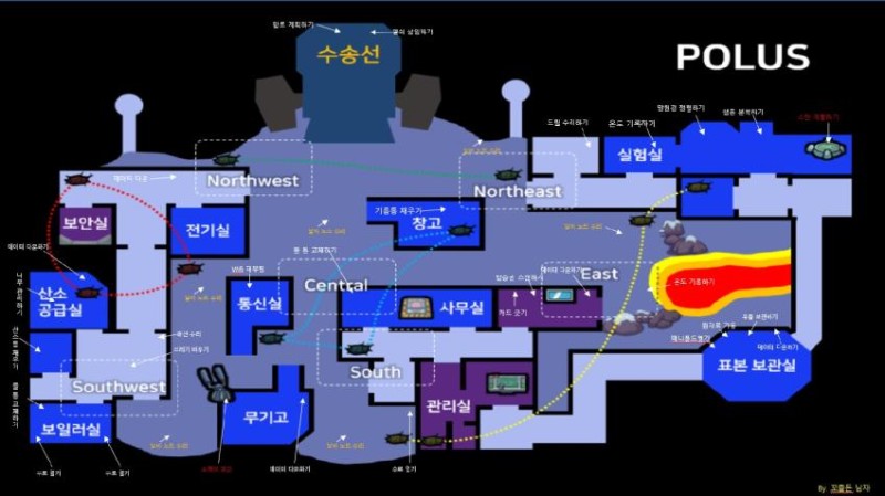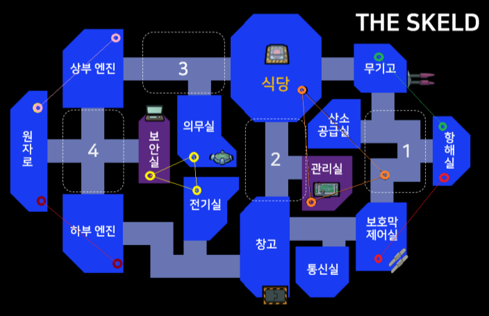 확정미션이 중앙 아래의 의무실 밖에 없으며 유일하게 문잠금 사보타지를 쓸 수 없다.