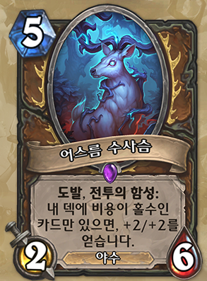 5코 2/6, 야수, 도발, 전투의 함성: 홀수덱이면, +2/+2를 얻습니다.