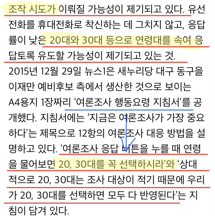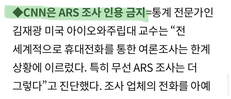 유선은 당연히 노인들만 받을 확률이 매우 높으니 유선 비율이 조금이라도 있다면 여론이 왜곡된다.