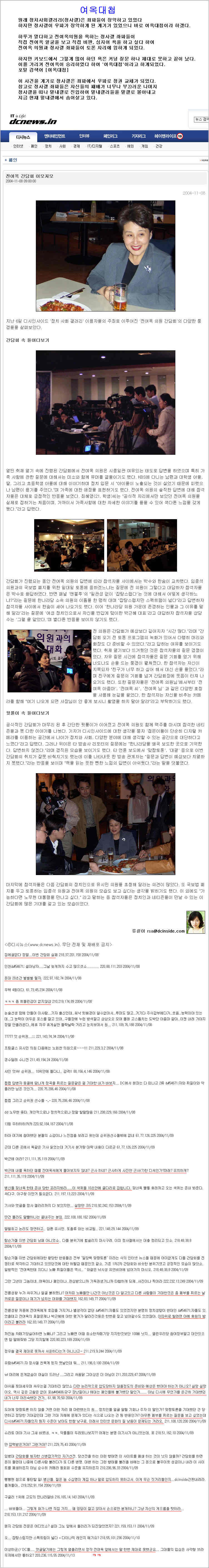 당시 왼쪽으로 꺾일대로 꺾인 정사갤에서는 전여옥 당시 한나라당 의원이 역시 입만 산 보수라고 생각하고 현피를 신청했다.