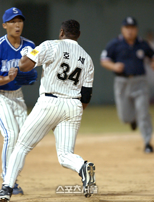| "불량학생 잡으러가는 중이다" - 참 교육자 호세(36)씨, 2001년 마산구장에서 격노하며 |