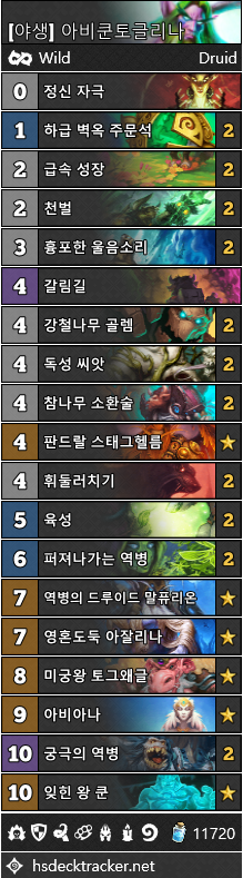 야생 아비아나 + 잊힌 왕 쿤 덱에 미궁왕 토그왜글과 아잘리나를 넣고 내가 탈진일때 쿤+토그왜글+아잘리나를 쓰고 자연화로 탈진시키는 덱이 나왔다.