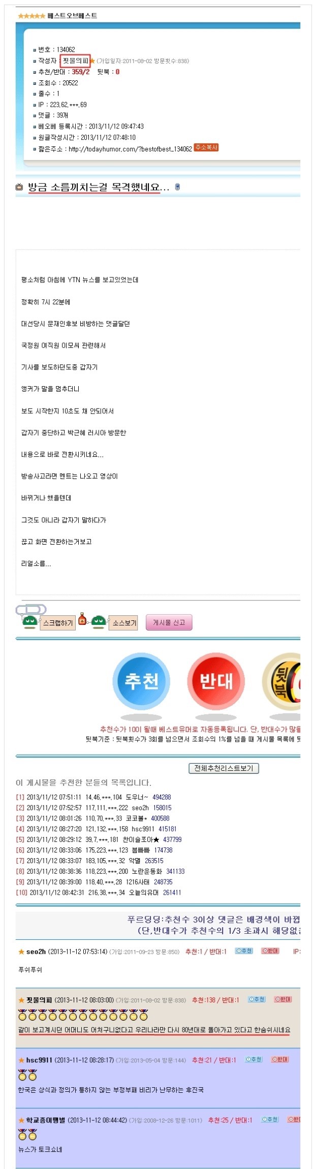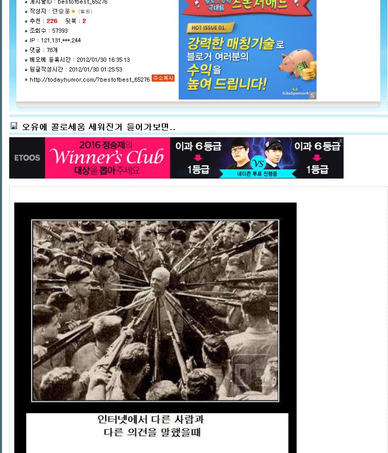 | 네이트판 | 클리앙 | 츄잉 | 와이고수 | 보배드림 | 딴지일보 | ||||||||||||||||||||||||