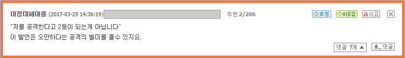 평가63) 참 병신 같은 저격을 많이 하는데 그로 인한 피해자나 문제가 발생할 때면 그건 우리가 예전에 일베 놈들 분탕질에 너무 많이 당해서 그렇다 그래서 그만큼 예민해진 거다 하고 피해자 코스프레에 들어간다 소름 돋을 정도 진짜 피해 의식에 젖어있는 건지 아니면 어떻게든 자기들 잘못이라는 것을 인정하고 싶지 않아서 그러는지는 모르겠으나 위선자들이라는 것만은 확실하다