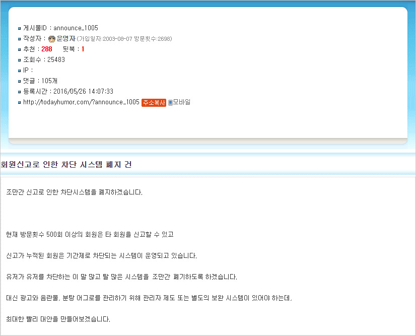 이름과 실재가 다른 사이트. 오늘의 유머라지만 유우머는 쥐뿔도 없는 노잼 사이트.