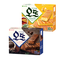 우리가 맨날 보고 먹는 과자회사 오리온 갓과자 중 하나. 쇼콜라(Chocolat)랑 치즈가 있다. 고소하고 달고 맛있다.