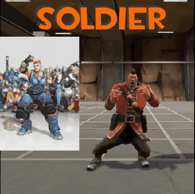 물론 일부 모드(언덕의 왕이나 수레밀기) 랑 일부 영웅(파라=솔져, 라인하르트 = 데모나이트, 정크랫=데모망가 , 트레이서 = 스카웃, 한조 = 활스나 양심이 있으면 메이 = 파이로라 하지 말자.)이 컨셉이 겹치긴 하는데, 겹치는 부분 말고도 다른 부분이 있는 만큼 게임내에서 그 컨셉이 어떻게 나타날지는 미지수다. 즉, TF2 스카웃 = 오버워치 트레이시! 라고 단정짓기에는 무리.