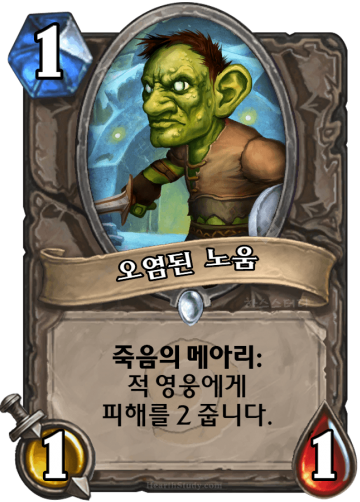 원래는 1코 2/1로 2뎀씩 영웅을 때리고 죽어도 죽음의 메아리로 상대 명치에 2뎀을 또주는 그야말로 명치에 환장을한 또라이새끼였으며