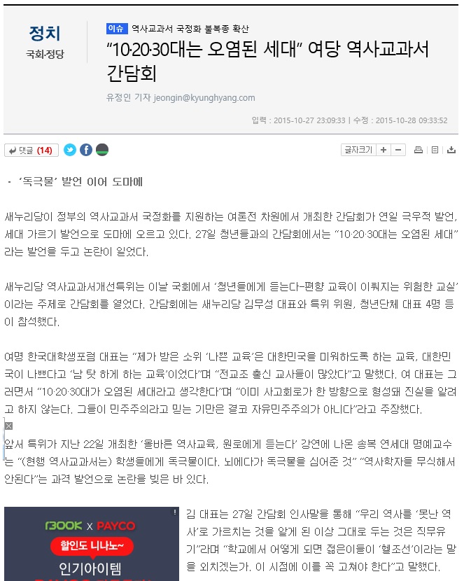 이번에는 민주당에서 20대는 역사 의식이 없다고 씨부렸다 카더라