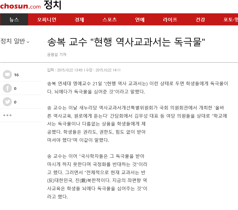 독극물과 같은 검정교과서를 국정화시키면 될지도 모른다고 한다