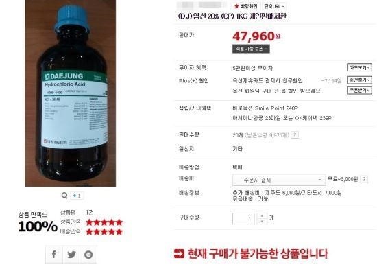 온라인 쇼핑사이트에서 일반인에게 염산을 판매한 무책임한 사건들