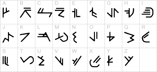 말그대로 외계인이 쓰는 문자. 창작물에서 허구안날 나오는 문자다. 위에것은 헤일로 시리즈에 나오는 선조의 문자다.