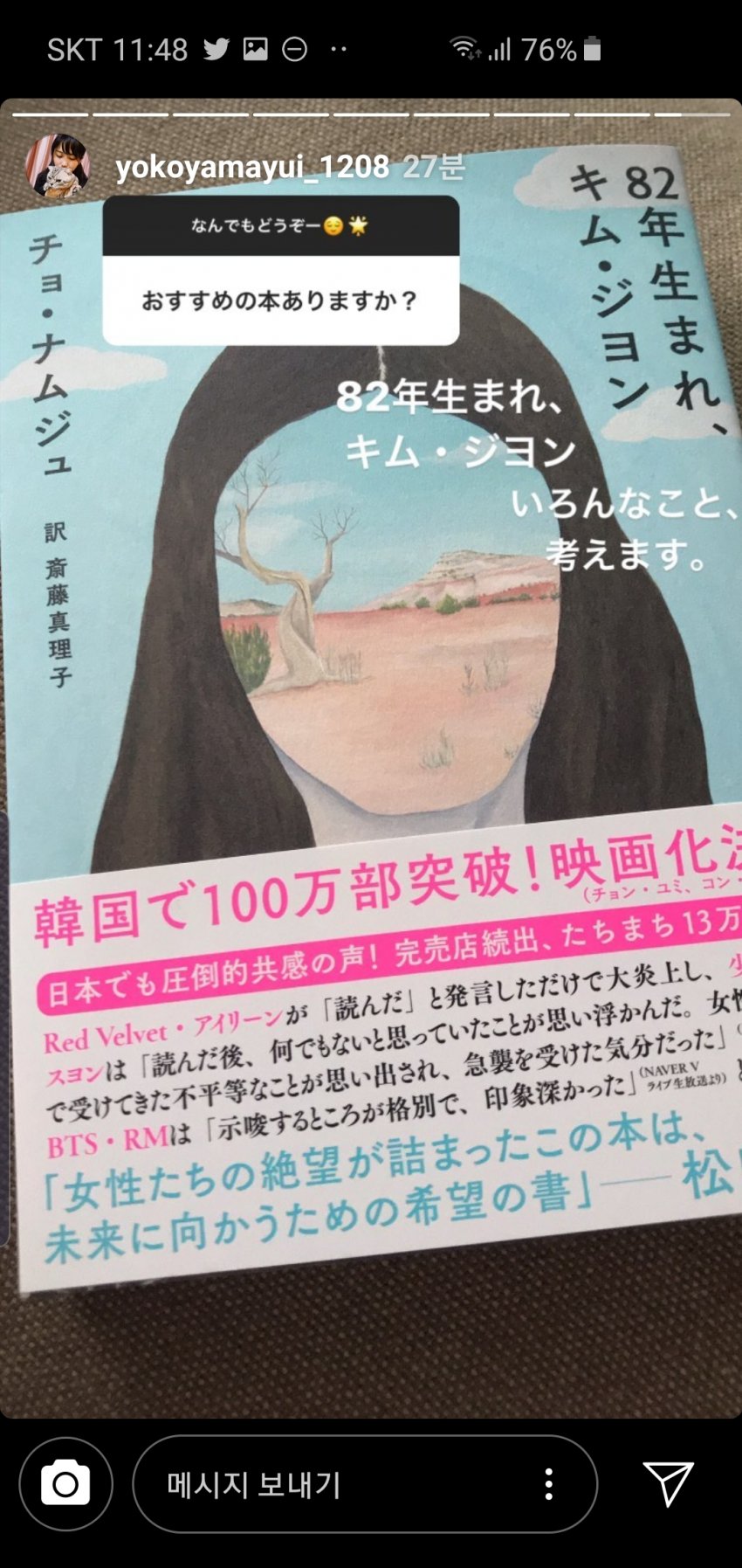 82년생 김지영을 인스타에 올렸다.