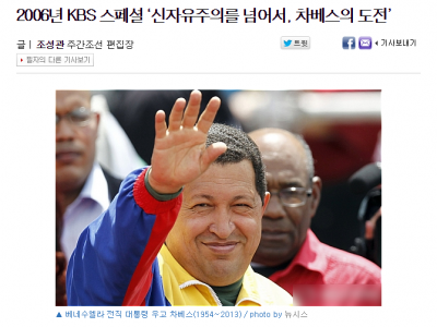 지금도 유튜브에 차베스 쳐보면 미디어협동조합이니 민주단체니 하는 븅신같은데서 어디 운동권 사상에 찌든 먹물 새끼 나와서 민중의 위대한 승리 차베스 어쩌니 후빨하는 영상이 아직도 있다