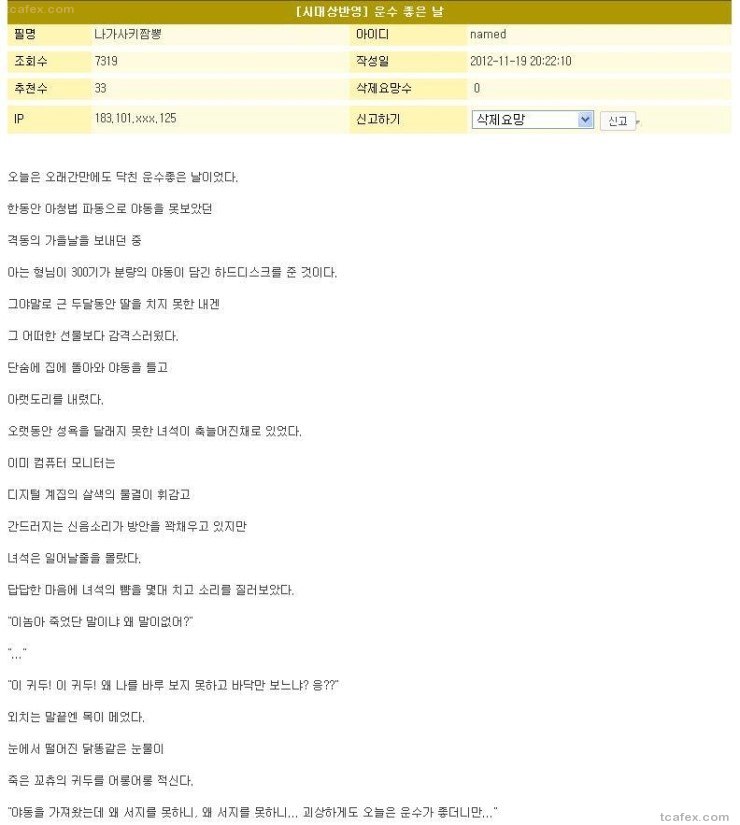 마누라 뒤진 날 ㅠㅠ