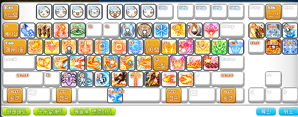 물론 저런 스킬만 사용하고 다니진 않는다. 당연히 영자니까 다른 직업 스킬 마음대로 가져가서 이렇게 키세팅을 해 둘 수있다.