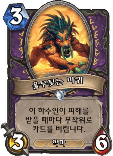 3코 3/6, 악마, 이 하수인이 피해를 받을 때마다 무작위로 카드를 1장 버립니다.