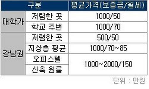 다만 원룸은 보증금과 방세를 조절할 수는 있다.