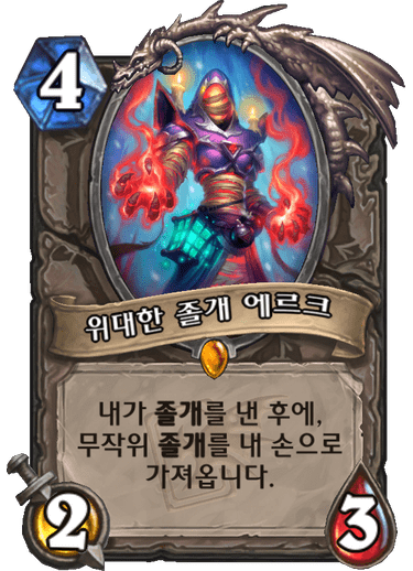ㄴ무한졸개가 불가능한게 졸개도 1코를 먹는다. 전설카드가 아니었으면 평가가 더 좋았을지도 모르겠지만 전설카드라 ㅄ이다.