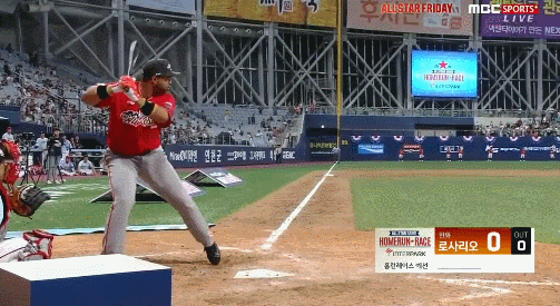 이번에는 최재훈이 배팅볼을 던졌고, 갓사리오는 이대호를 누르고 홈런레이스 우승하셨다.