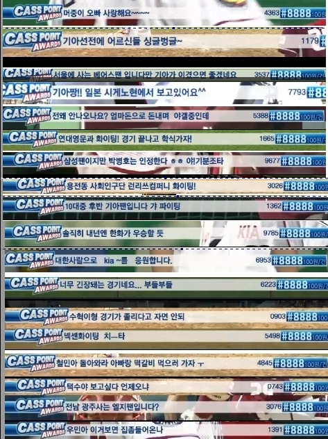 야붕이들이 빠따 중계 중 유료문자 보내기에 단체로 메시지를 보냈다.