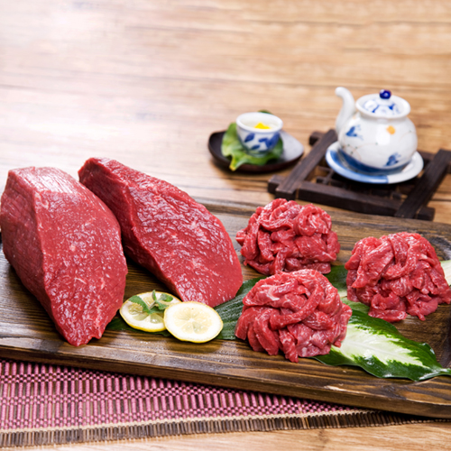 쥬근지 얼마 안 된 소의 우둔살(엉덩이)을 썰어내고 양념을 간단하게 쳐서 만든다