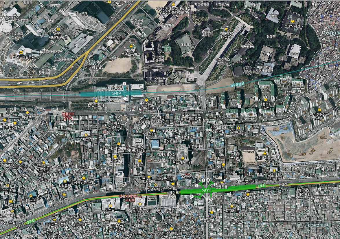 젊은 여성들이 많다. 이유는 뭐 당연한거지만 2,3번출구쪽에 이화여대가 있다.