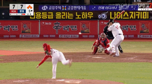 4.16 7ㅣ아전 팀이 3회 7점을 내주고 5회 7대7까지 따라붙은 가운데 2사 만루서 싹쓸이 안타를 치셨다.