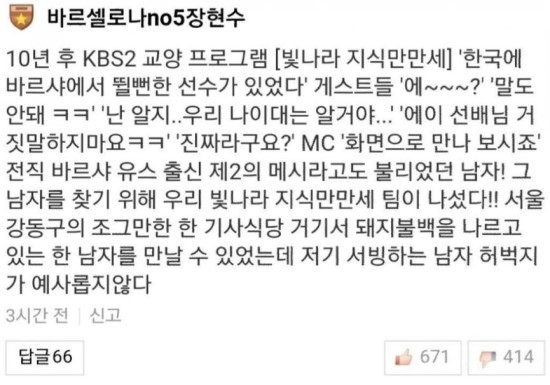 ㄴ그랬었지. 벌써 몇년전, 그것도 바르샤 징계 받기전에 폼 좋았을 시절 얘기지만.