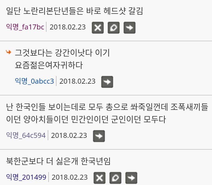 디시인사이드에서도 일베충 새끼들이 단체로 몰려와 전두환이 죽자 야념글 댓글에 "전두환 그립읍니다" "전라도로 태어난 게 죄" 하고 자기랑 의견 다른 유저들은 "빨갱이" "네다홍" 이러고 있다. 빨리 사회에서 매장시켜야 한다.