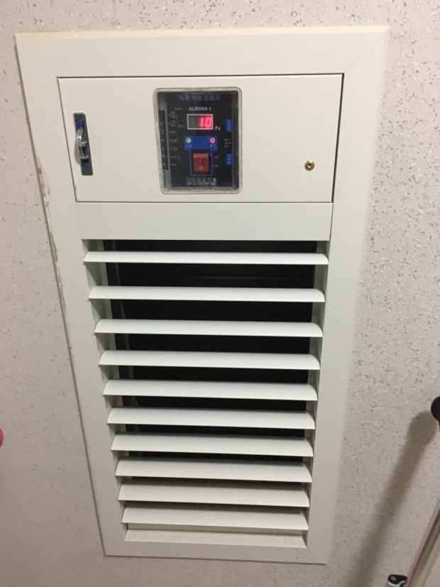 스위치가 있는데 이를 누르면 모터돌아가는소리와 함께 흡기구가 열리며 진공청소기마냥 공기를 빨아들이며 화재경보가 울린다.