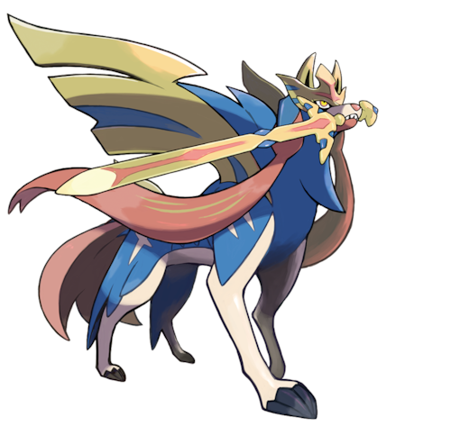 포켓몬스터 소드·실드에 나오는 전설의 포켓몬인데 생긴게 참 가오가몬같다. 이건 자마젠타도 마찬가지지만 게임에 타이틀중 하나인 소드를 상징하는 포켓몬이다. 색보니까 개굴닌자가 생각난다.